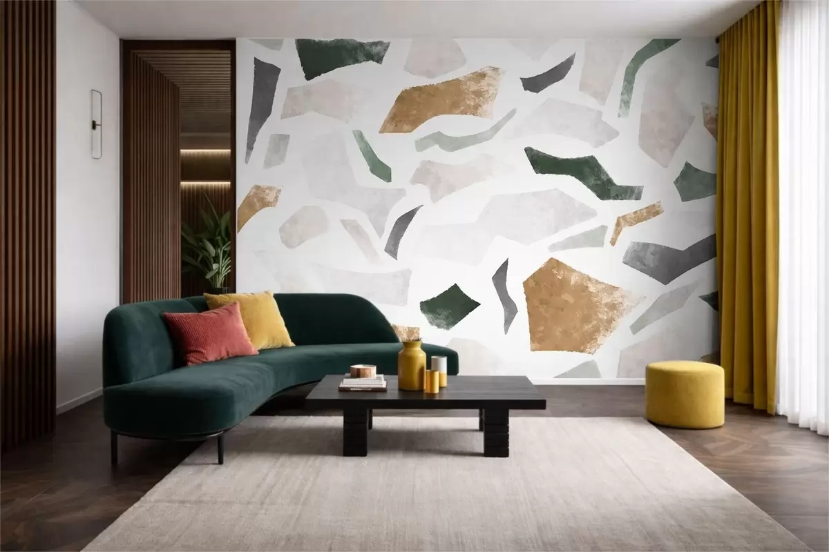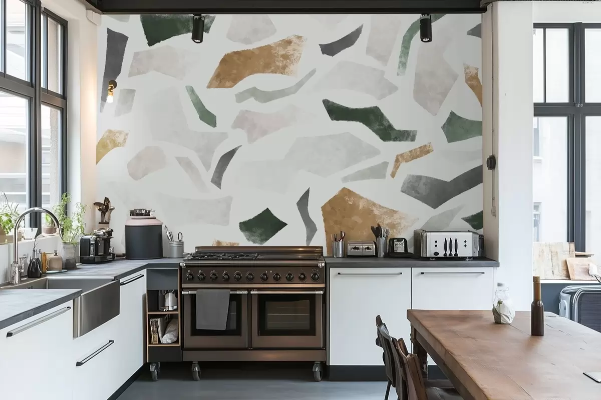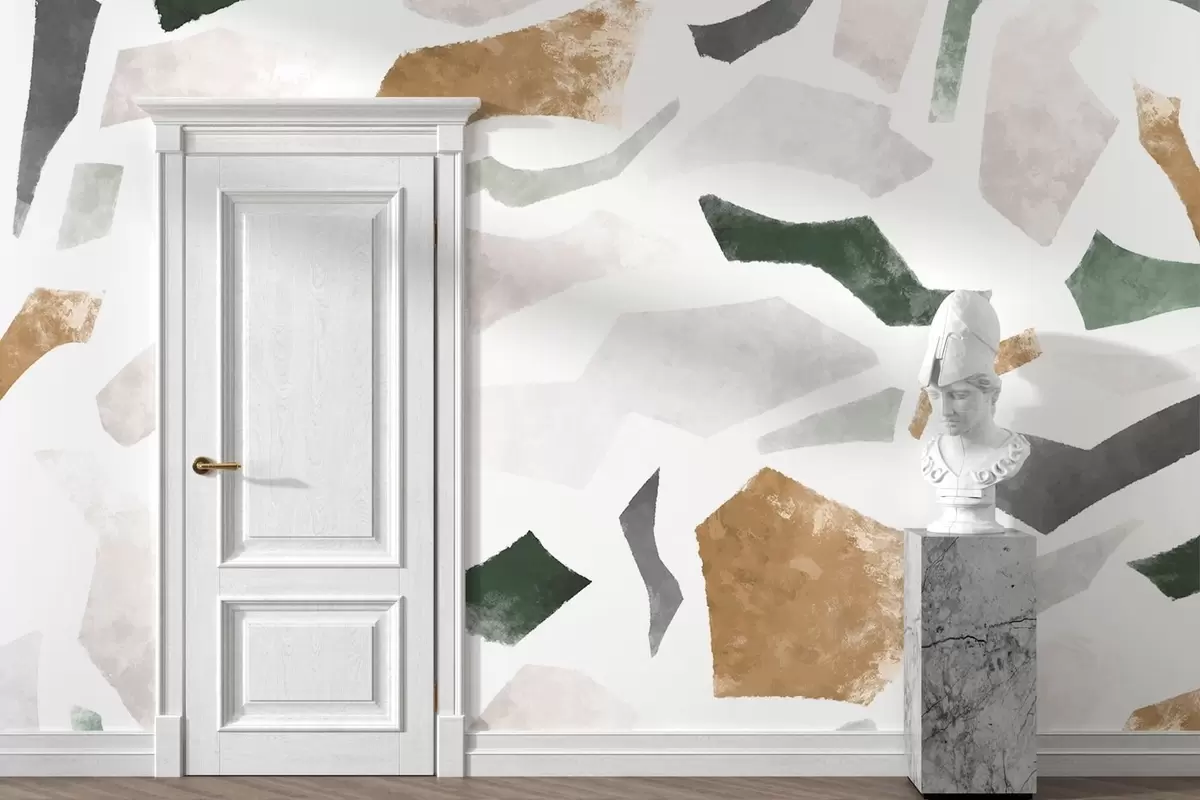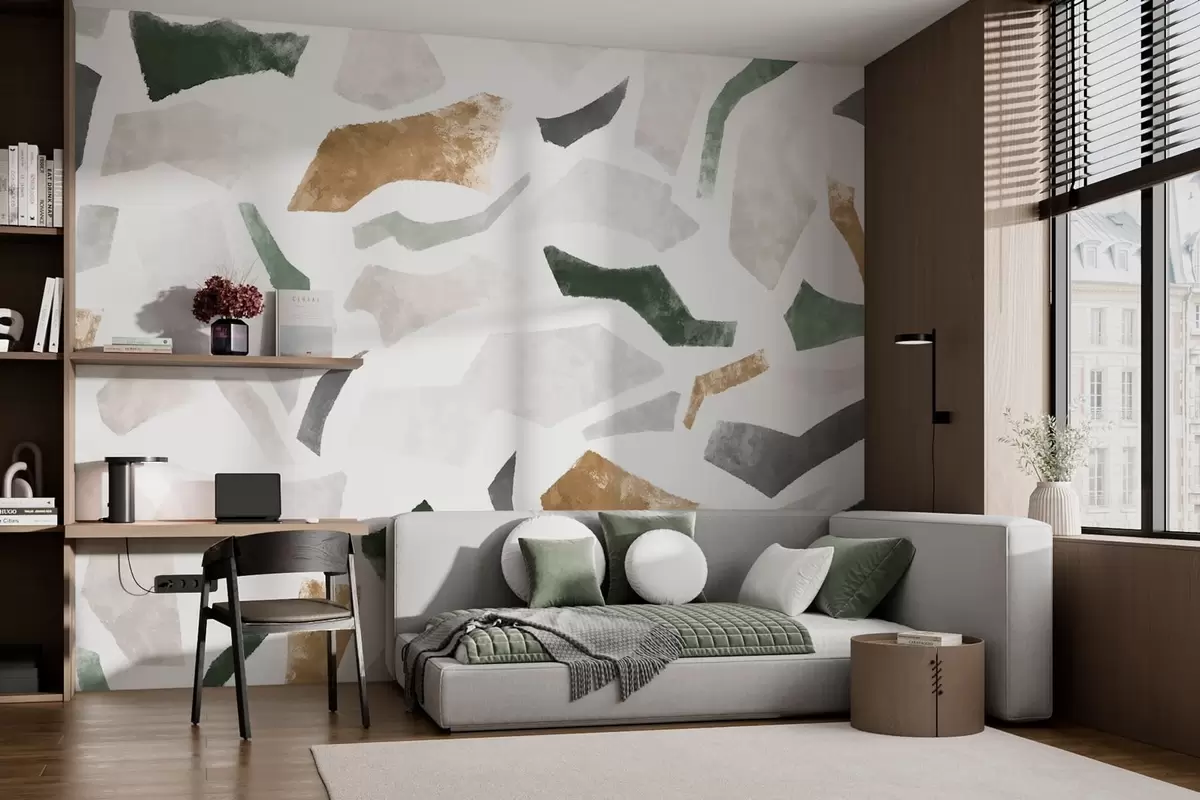Papier peint photo Fragments texturés abstraits dans des tons verts et beiges N° w05146