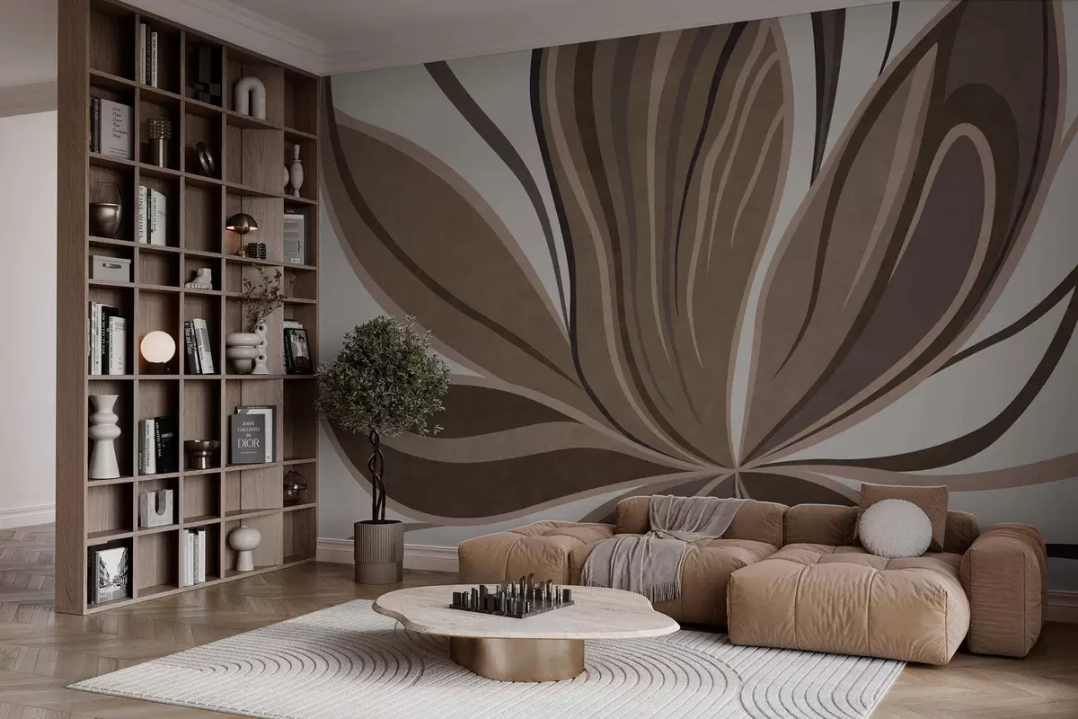 Papier peint photo Fleur stylisée aux lignes fluides dans des tons bruns N° w05147