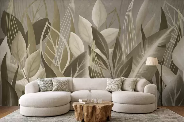 Papier peint photo Feuilles abstraites dans des tons beiges et verts N° w05148