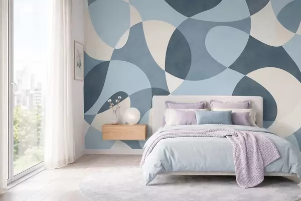 Papier peint photo Motif abstrait aux formes arrondies dans des tons bleus N° w05149v2
