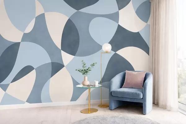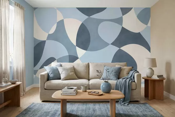 Papier peint photo Motif abstrait aux formes arrondies dans des tons bleus N° w05149v2