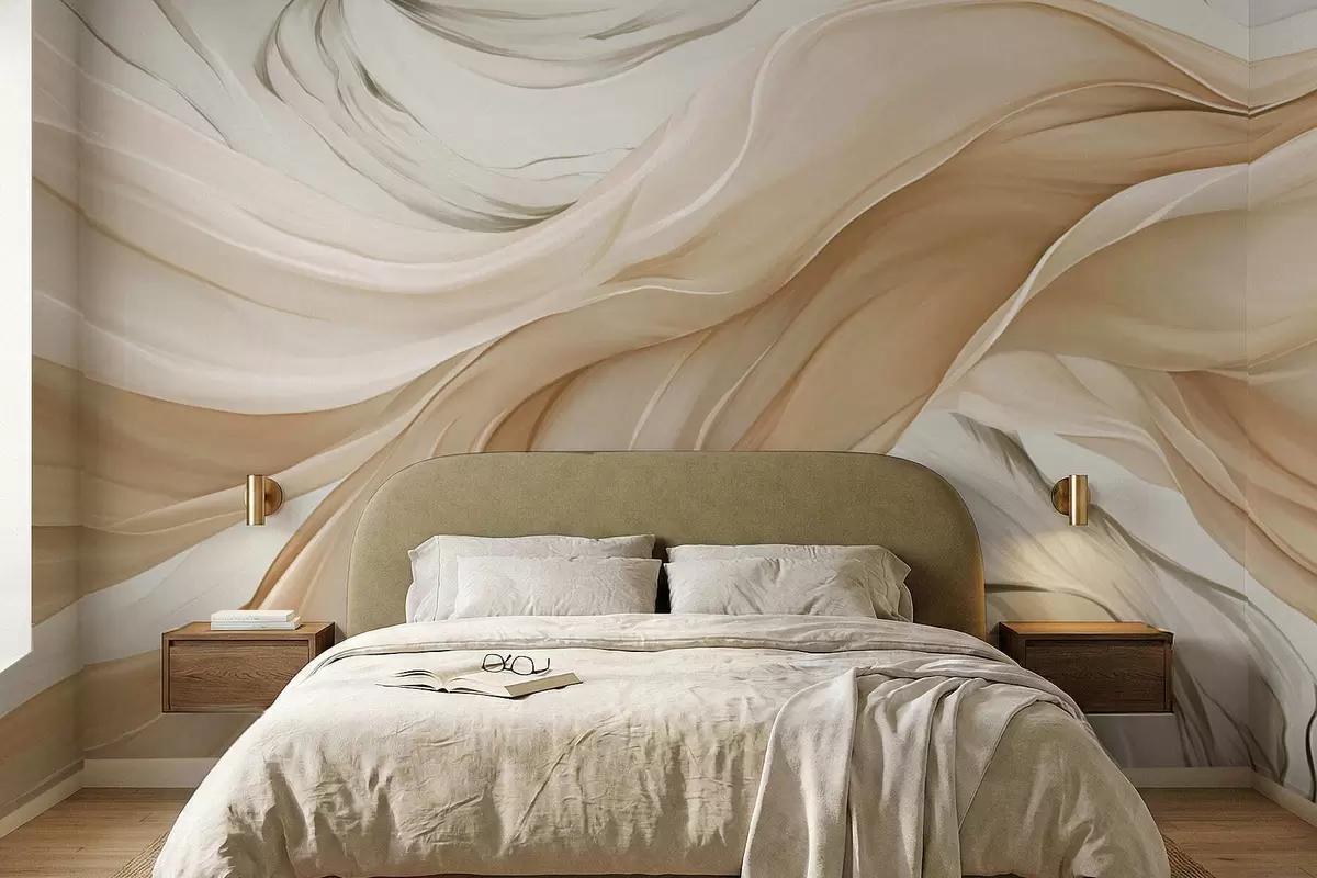 Papier peint photo Vagues fluides de tissu beige w05152