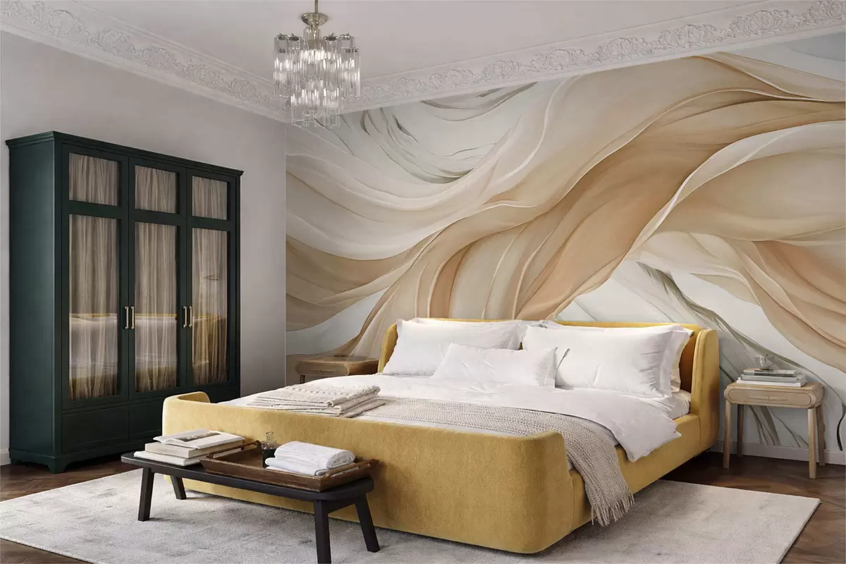 Papier peint photo Vagues fluides de tissu beige N° w05152
