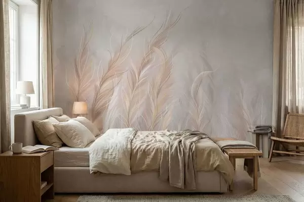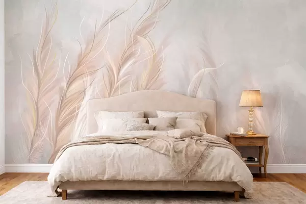 Papier peint photo Plumes douces et abstraites dans des tons neutres clairs N° w05153