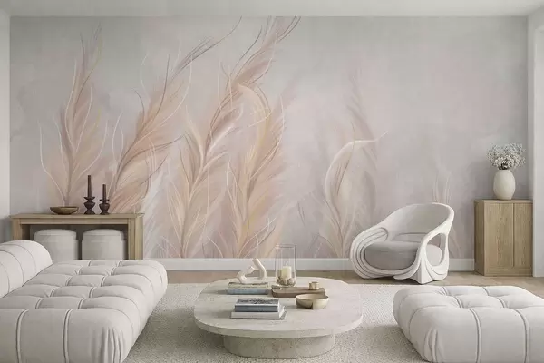 Papier peint photo Plumes douces et abstraites dans des tons neutres clairs N° w05153