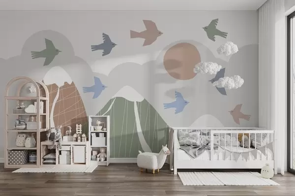 Papier peint photo Les montagnes et les oiseaux scandinaves N° w05166v1