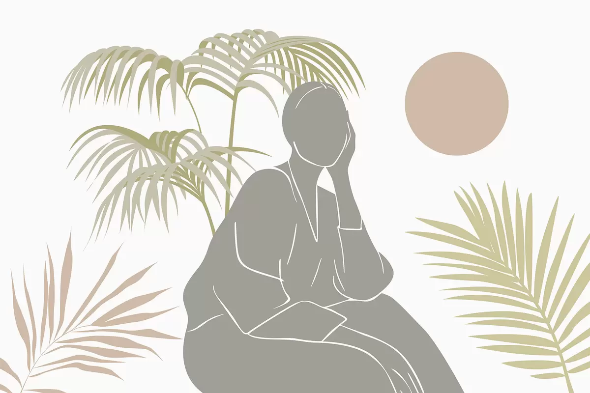 Papier peint photo Silhouette d'une femme et feuilles de palmier N° w05190