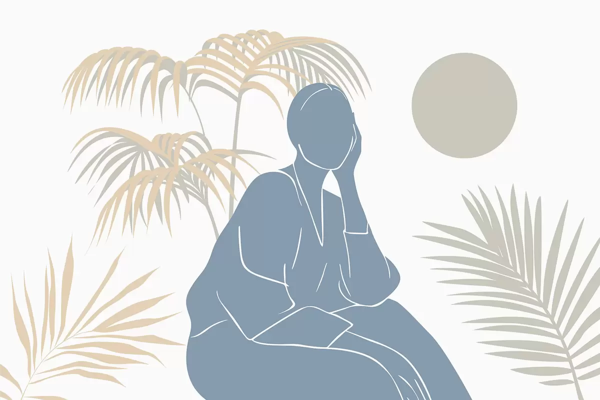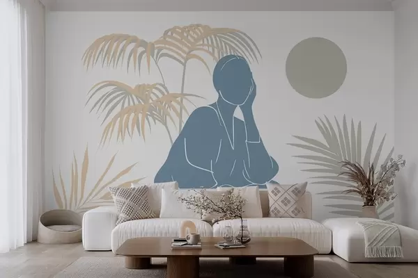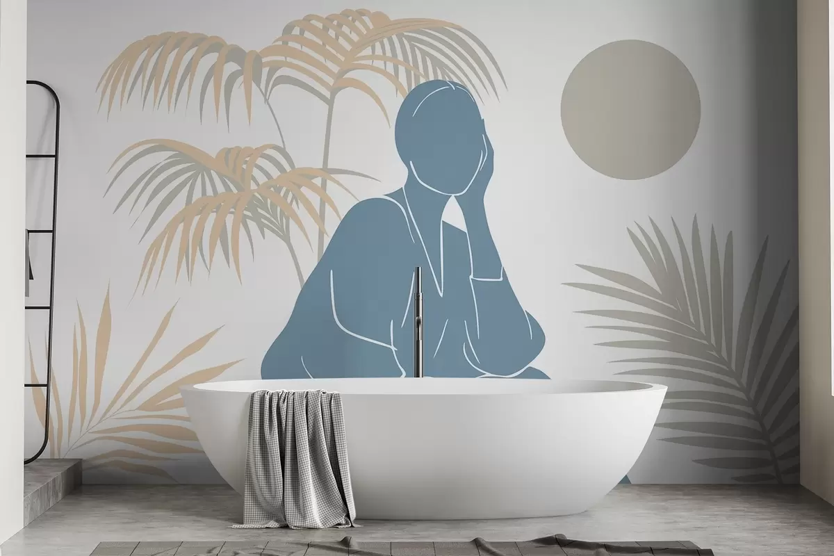 Papier peint photo Silhouette d'une femme et feuilles de palmier N° w05190v1