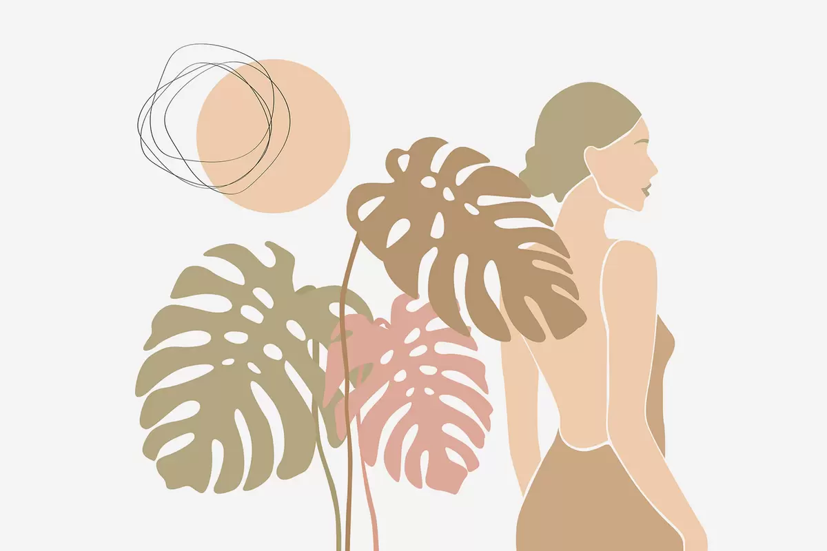 Papier peint photo Silhouette d'une femme près de feuilles tropicales N° w05192v1