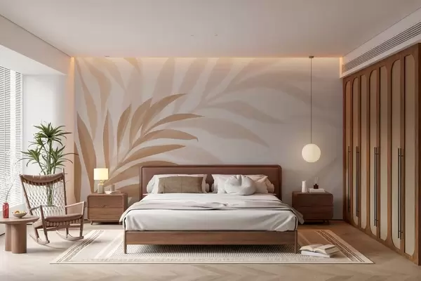 Papier peint photo grandes feuilles de palmier incurvées dans les tons beige et marron N° w05211