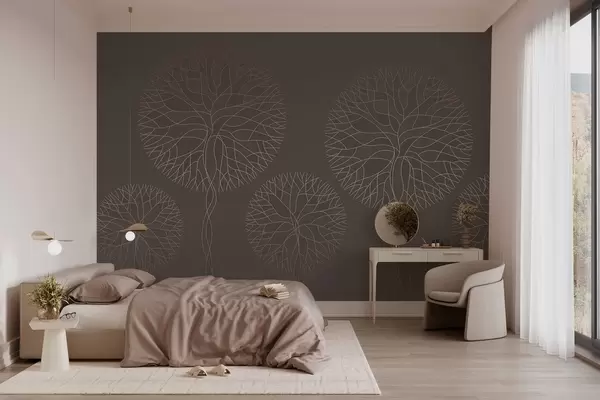 Papier peint photo Arbres fantastiques linéaires aux couronnes luxuriantes dans d'élégants tons moka N° w05213v1