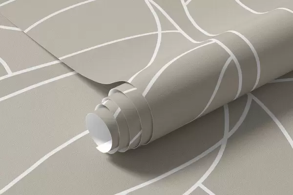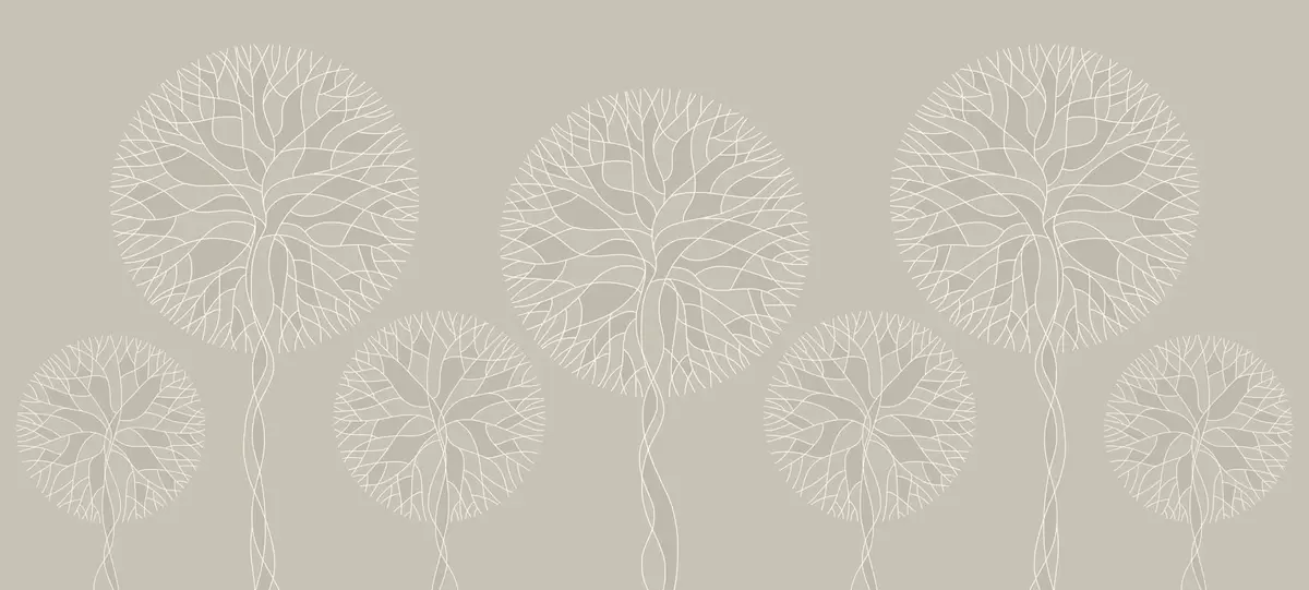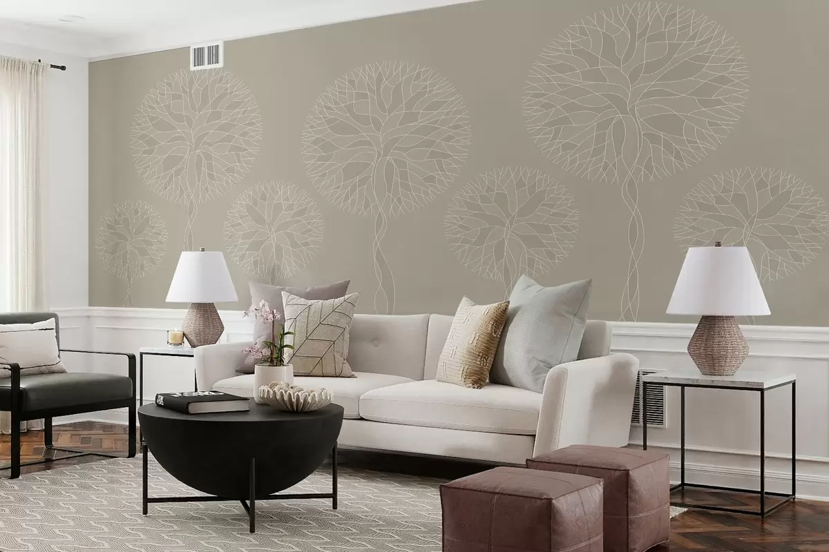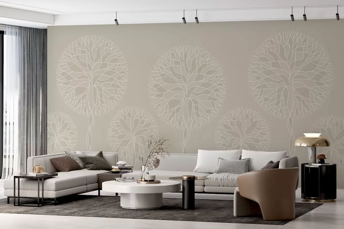 Papier peint photo Arbres fantaisistes linéaires aux couronnes luxuriantes dans les tons beiges N° w05213v3
