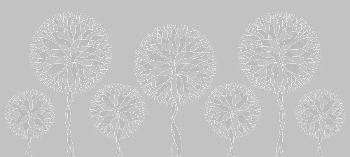 Papier peint photo Arbres fantaisistes aux couronnes luxuriantes dans des tons gris clair N° w05213v4
