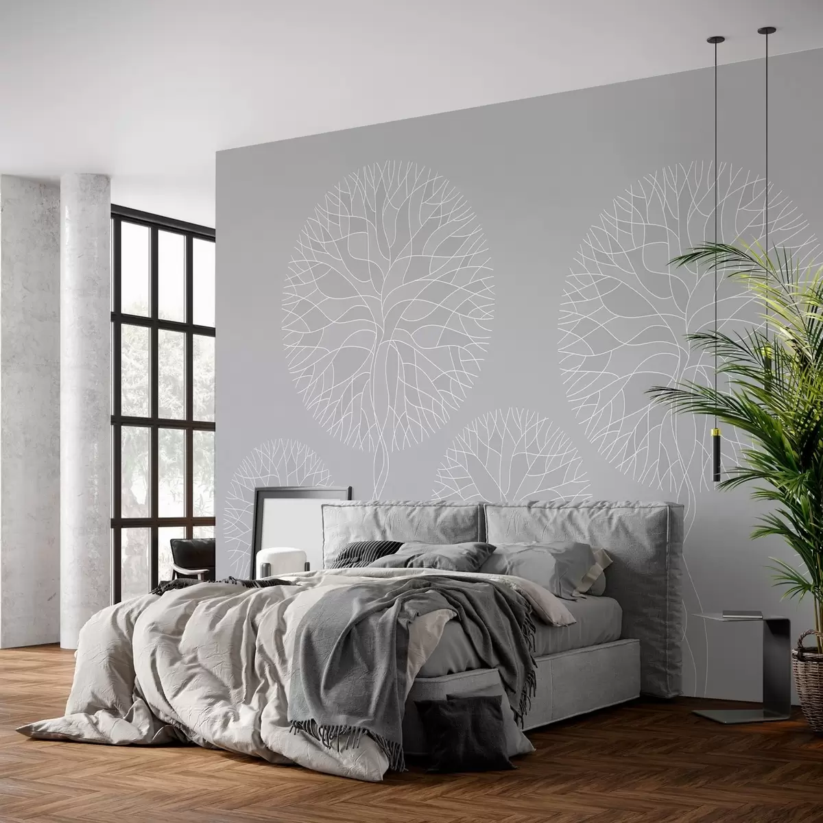 Papier peint photo Arbres fantaisistes aux couronnes luxuriantes dans des tons gris clair N° w05213v4