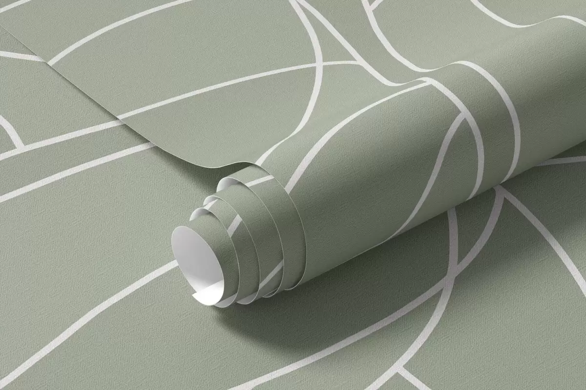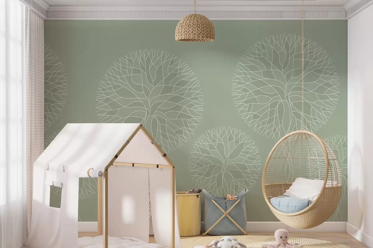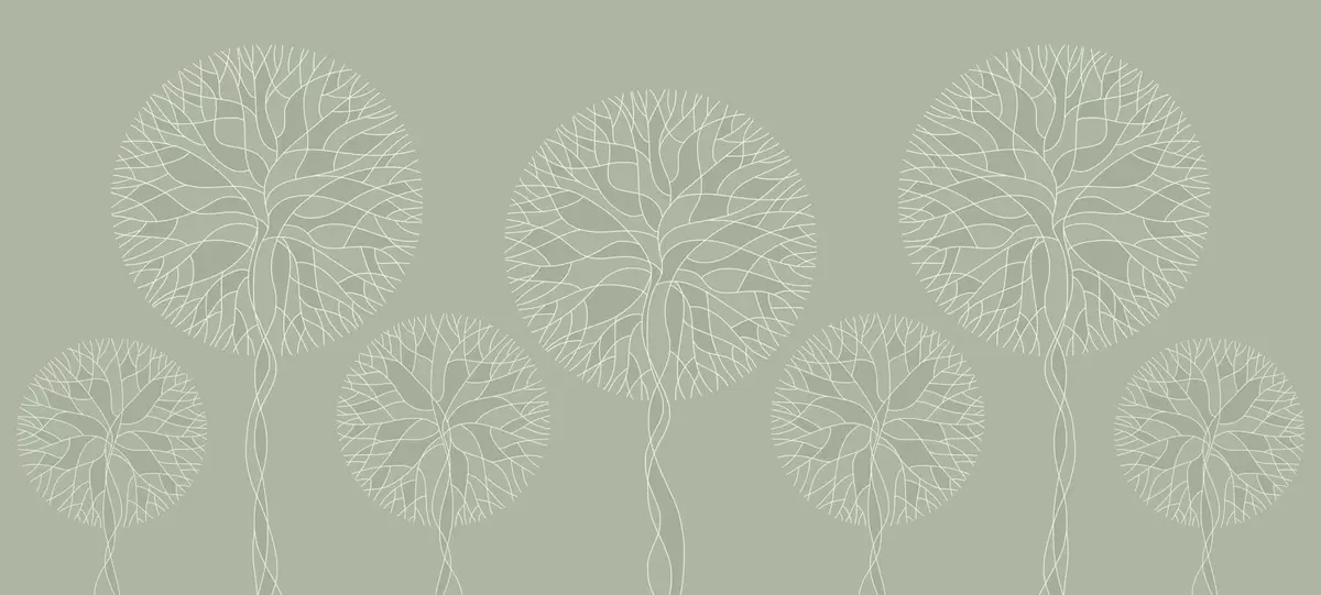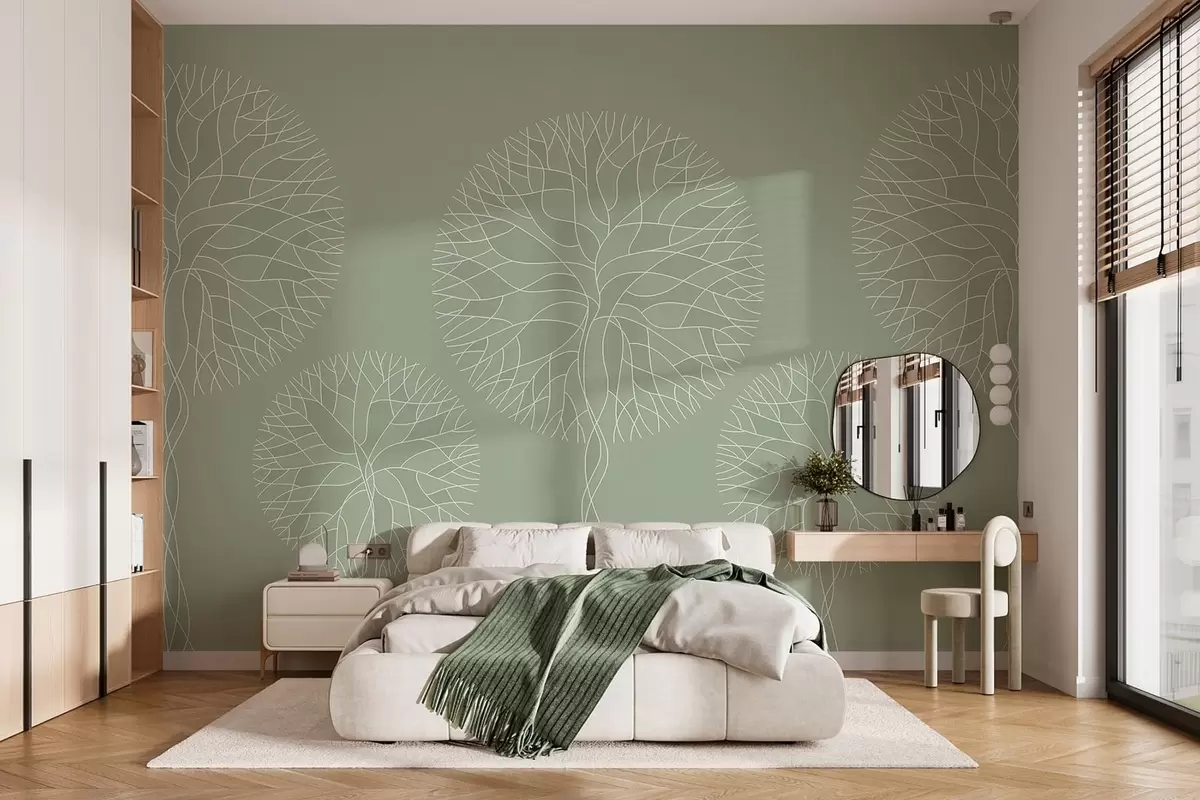Papier peint photo Arbres fantaisistes linéaires aux couronnes luxuriantes dans des tons vert clair N° w05213v6