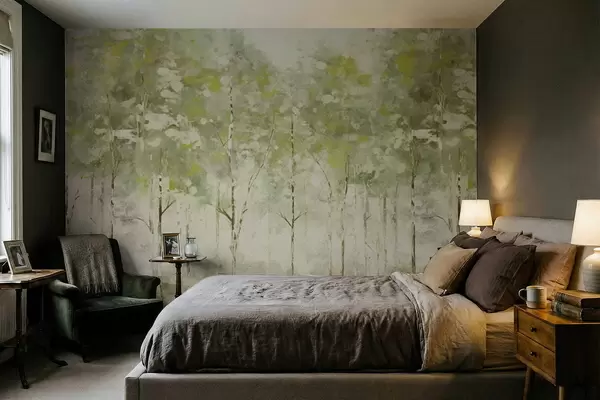 Papier peint photo Forêt stylisée avec des arbres élancés dans des tons verts N° w05221v1
