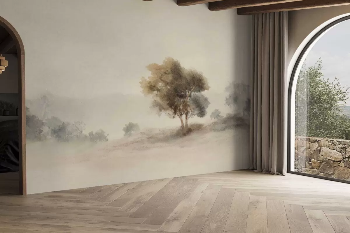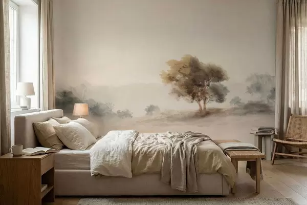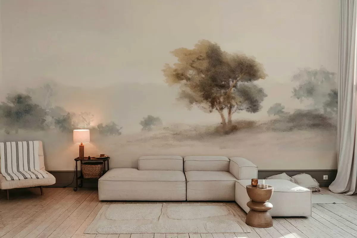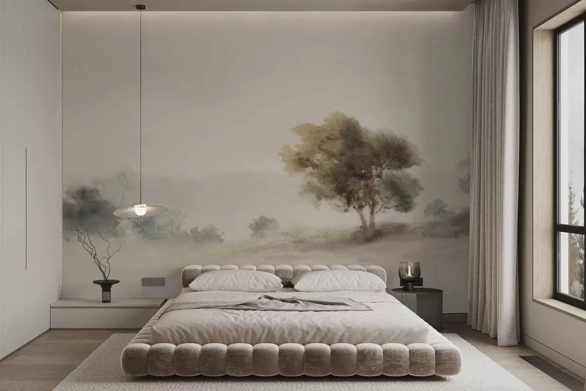 Papier peint photo Paysage minimaliste avec un arbre solitaire dans la brume N° w05223