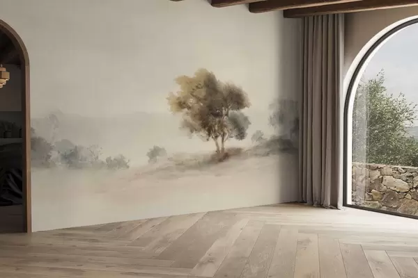 Papier peint photo Paysage minimaliste avec un arbre solitaire dans la brume N° w05223