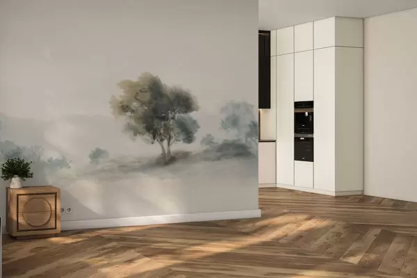 Papier peint photo Paysage calme avec un arbre et des formes douces et floues N° w05223v1