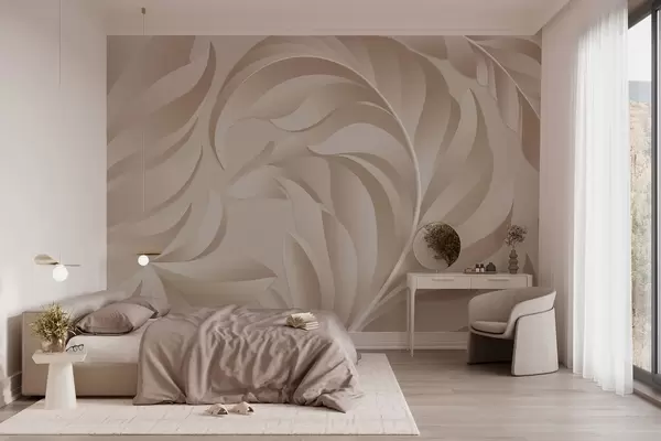 Papier peint photo grandes plumes texturées dans des tons beige et poudre N° w05231