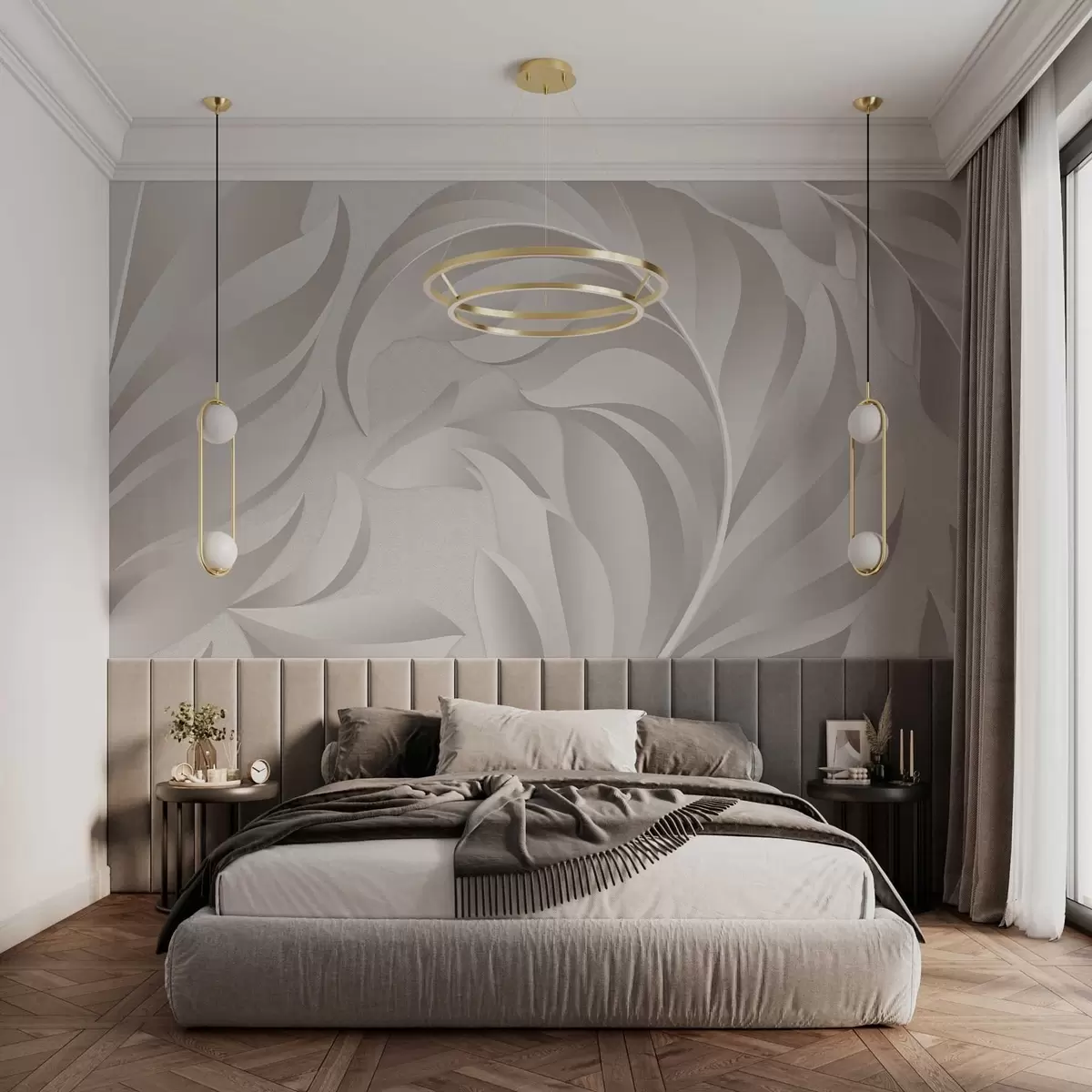 Le papier peint est divisé en bandes pratiques d'une largeur maximale de 50 cm