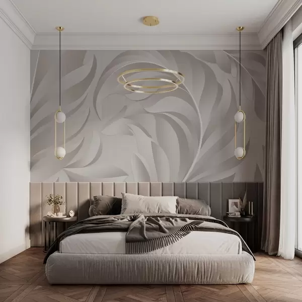 Papier peint photo grandes plumes texturées dans des tons nacrés N° w05231v2
