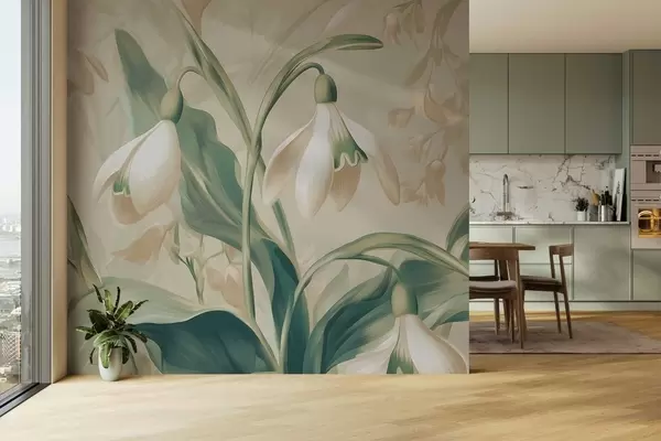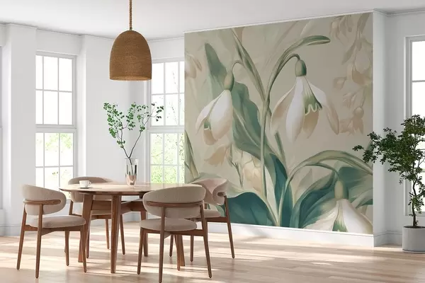 Papier peint photo perce-neige en fleurs sur fond beige N° w05234