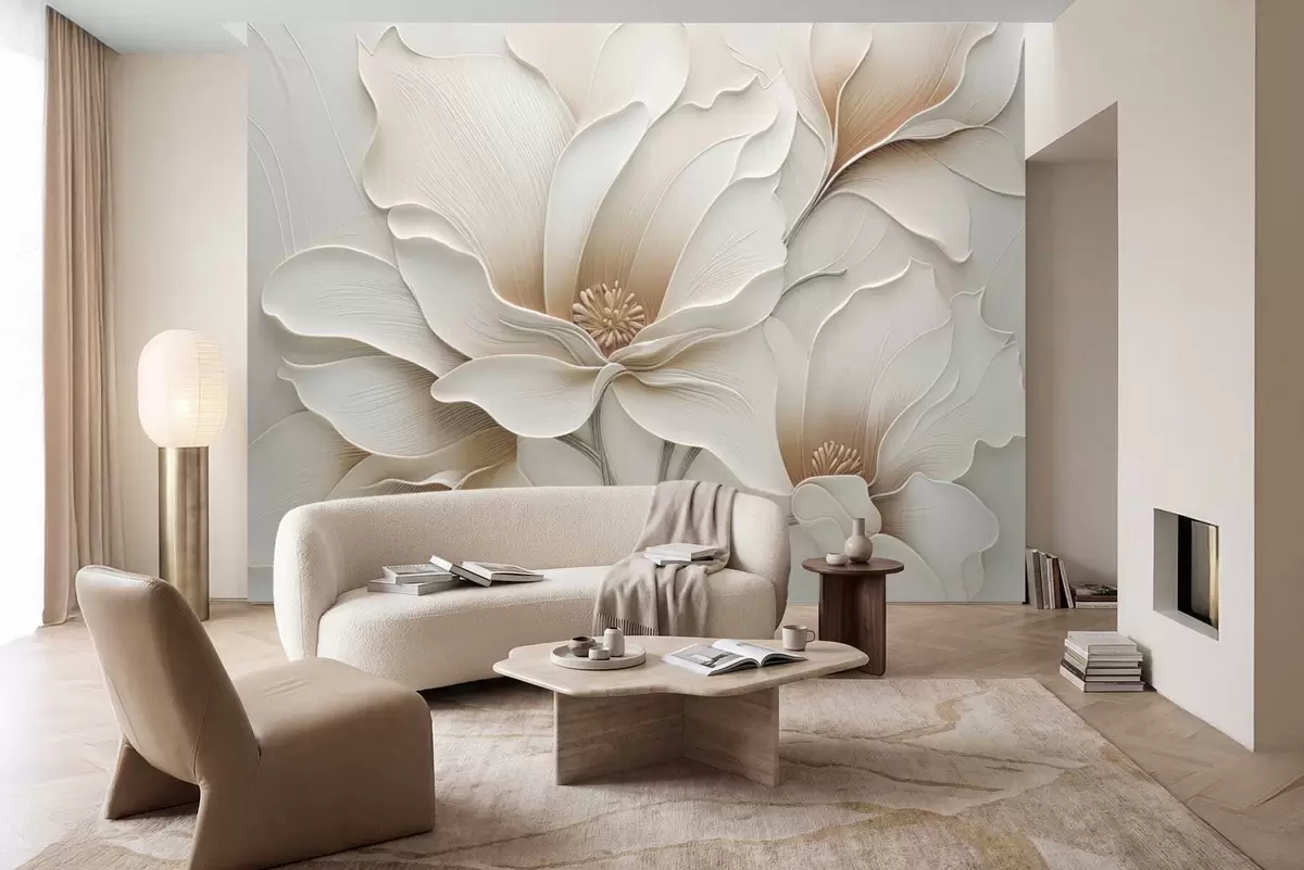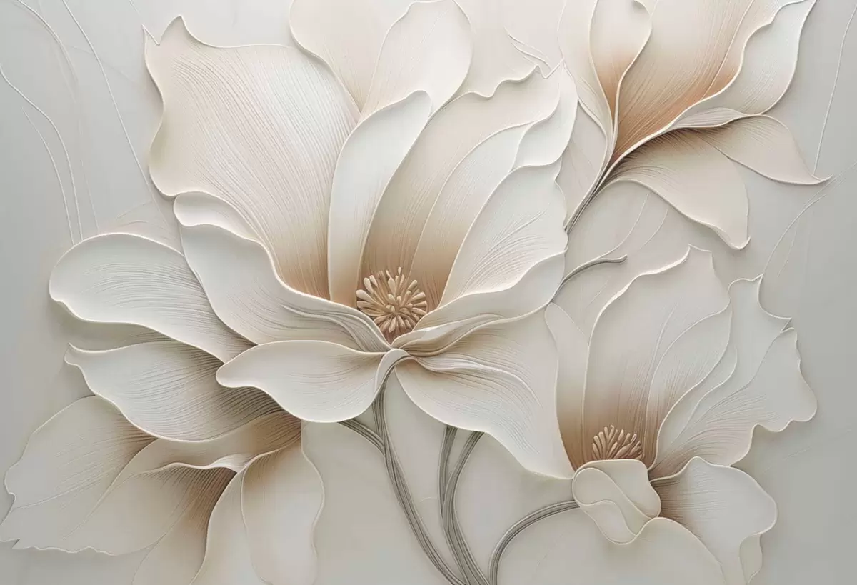Papier peint photo Gros plan sur un relief floral beige en relief N° w05269