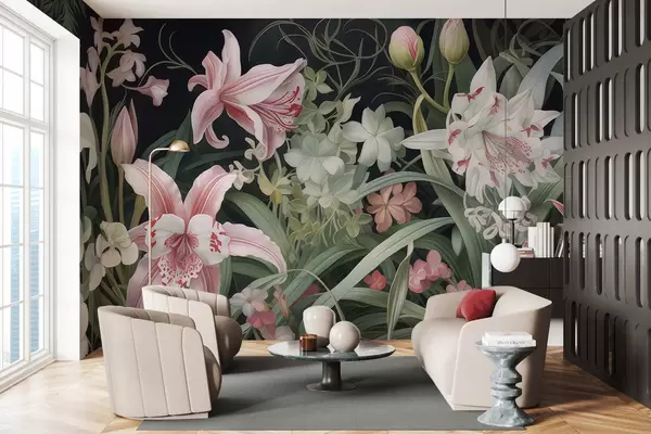 Papier peint photo De magnifiques fleurs sur fond sombre N° w05278
