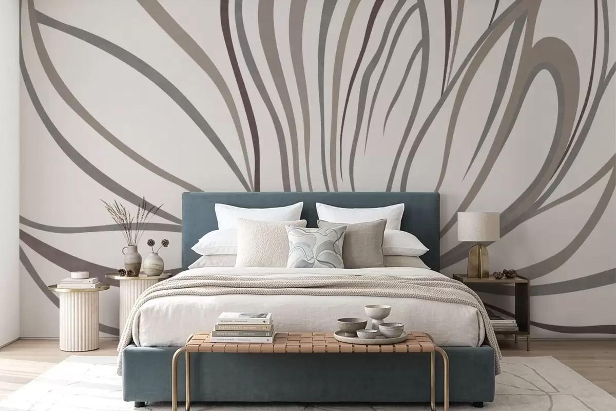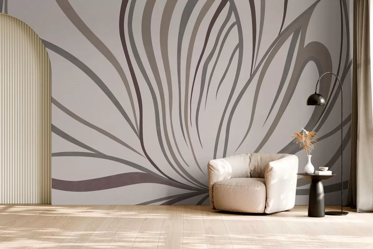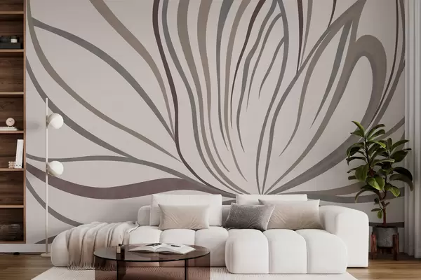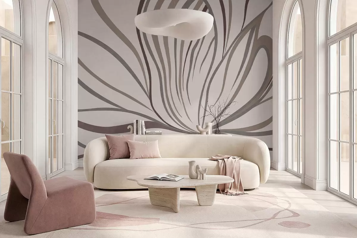 Papier peint photo Fleur abstraite avec des lignes dans des tons gris et roses N° w05392