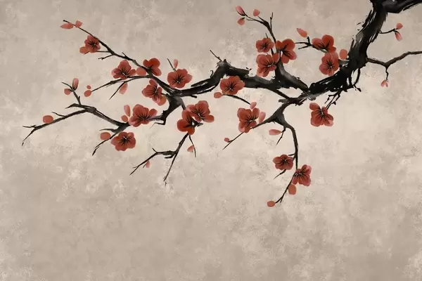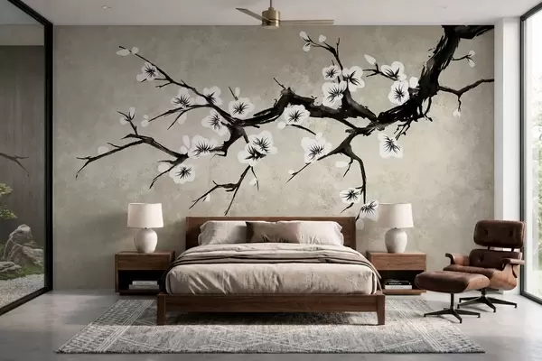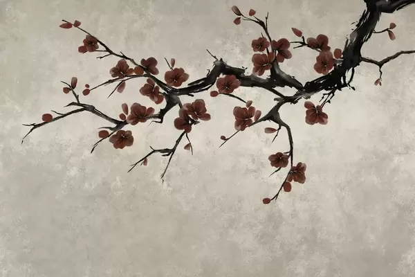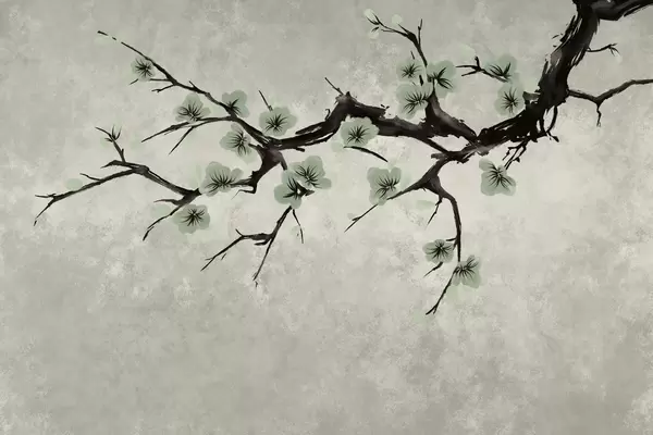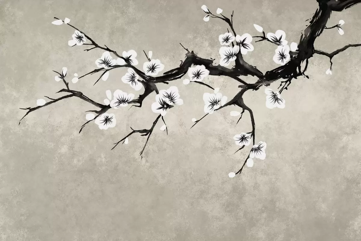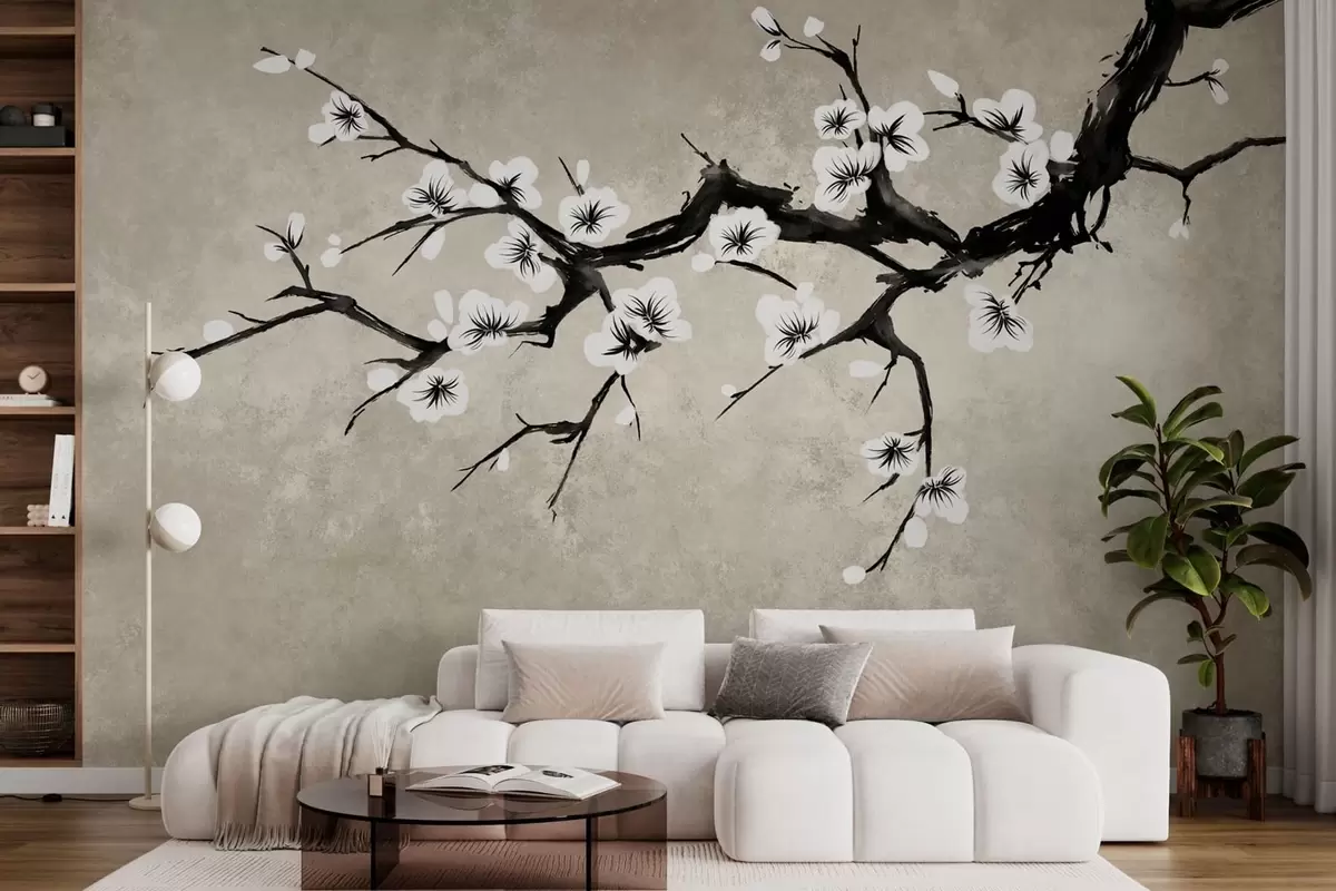 Papier peint photo Branche fleurie de blanc, dans un style minimaliste N° w05425