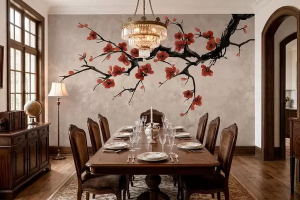 Papier peint photo Branche fleurie de style oriental sur fond beige N° w05425v4