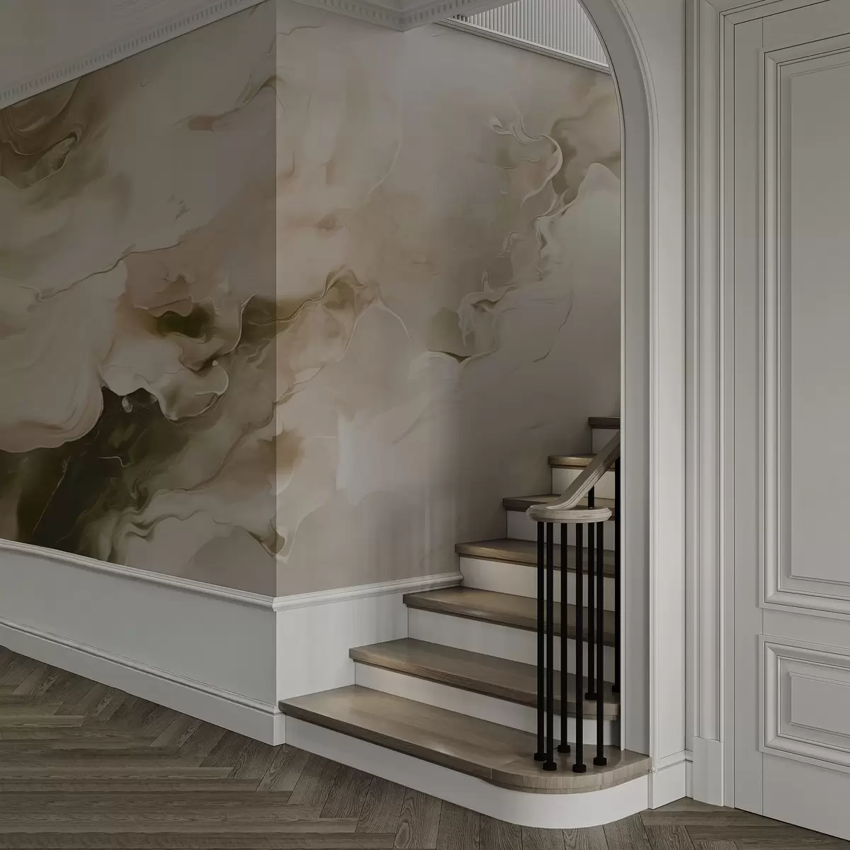 Le papier peint est divisé en bandes pratiques d'une largeur maximale de 50 cm