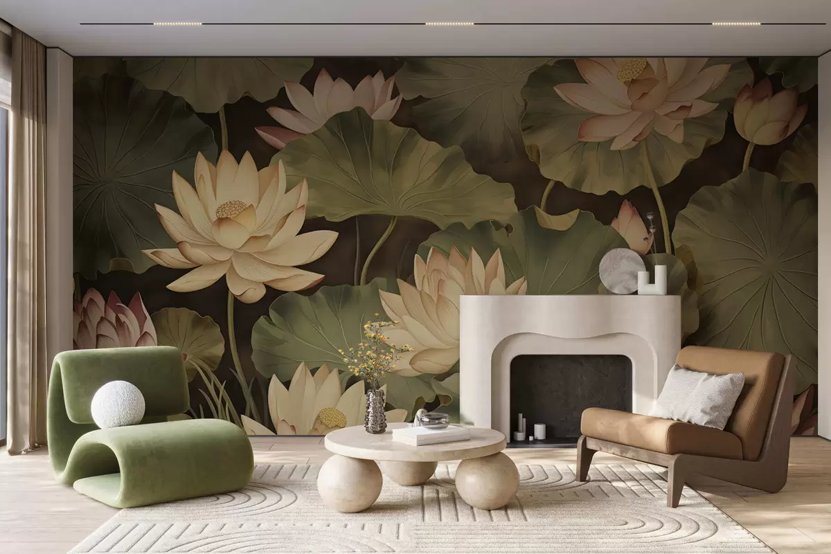 Papier peint photo Fleurs de lotus vintage N° w05445