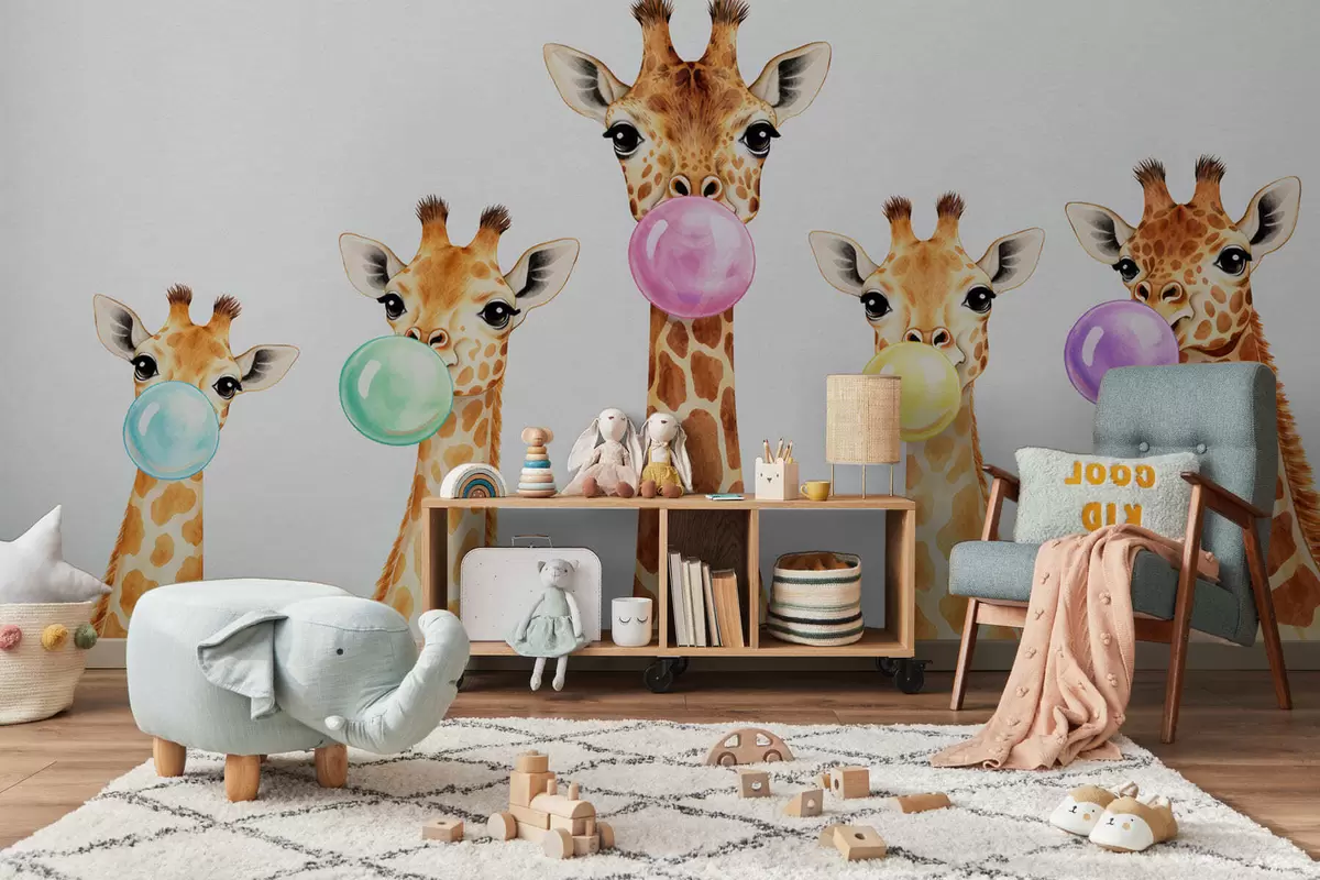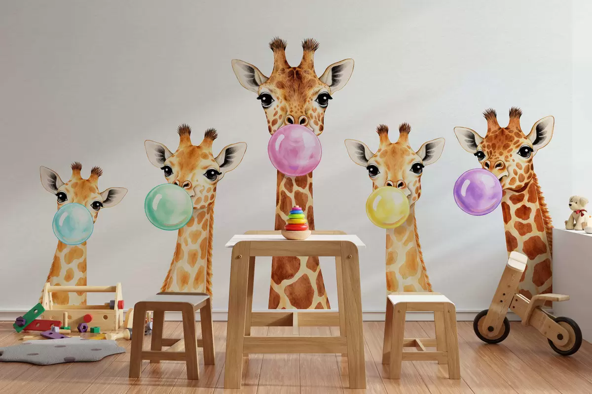 Papier peint photo Des girafes avec du chewing-gum N° w05492