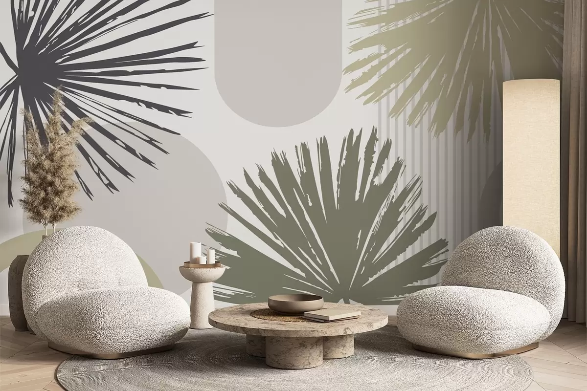 Papier peint photo Abstraction avec des silhouettes végétales et géométriques N° w05505v2