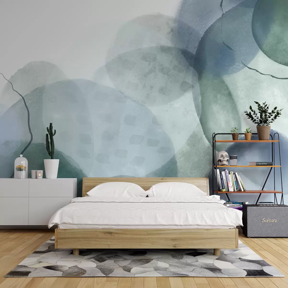 Papier peint photo Formes abstraites douces et aquarelles dans des tons de bleu, vert et blanc N° w07926