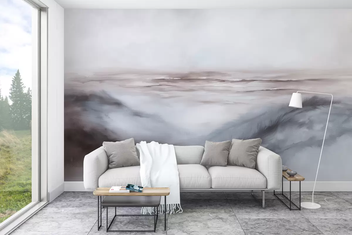 Papier peint photo Paysage abstrait aux couleurs pastel, coups de pinceau, plage, mer, palette de couleurs grises N° w08141