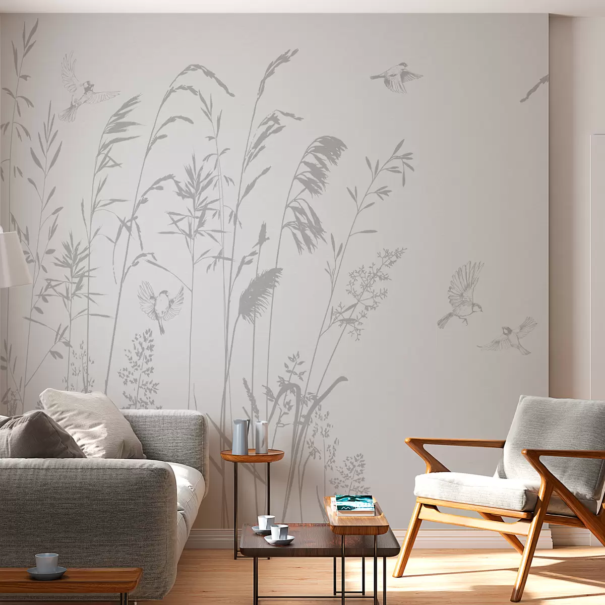 Papier peint photo Plantes et petits oiseaux nature minimalisme couleur grise N° w08172v1