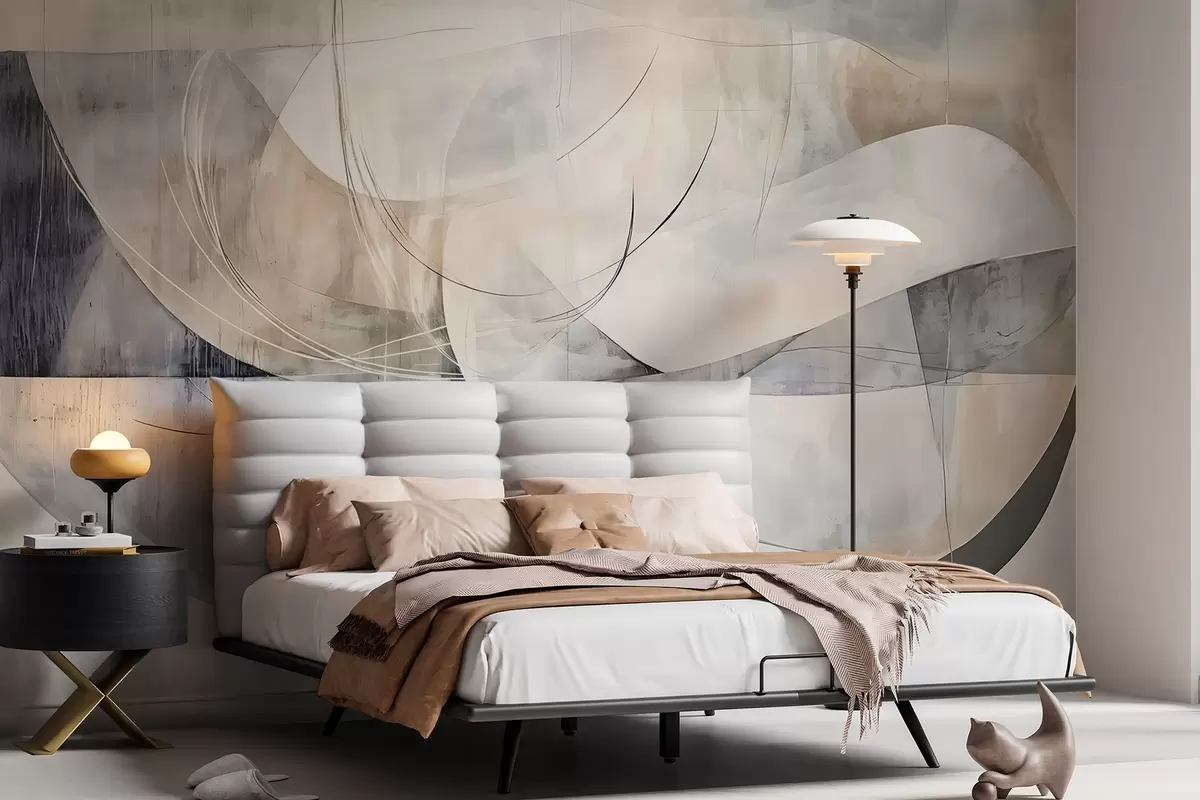 Papier peint photo Formes abstraites dans des tons de blanc, gris, beige et bleu sur un fond texturé flou N° w08461