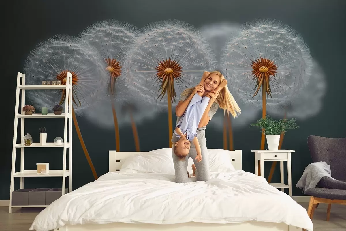 Papier peint photo Pissenlits aériens sur fond naturel sombre N° w08498