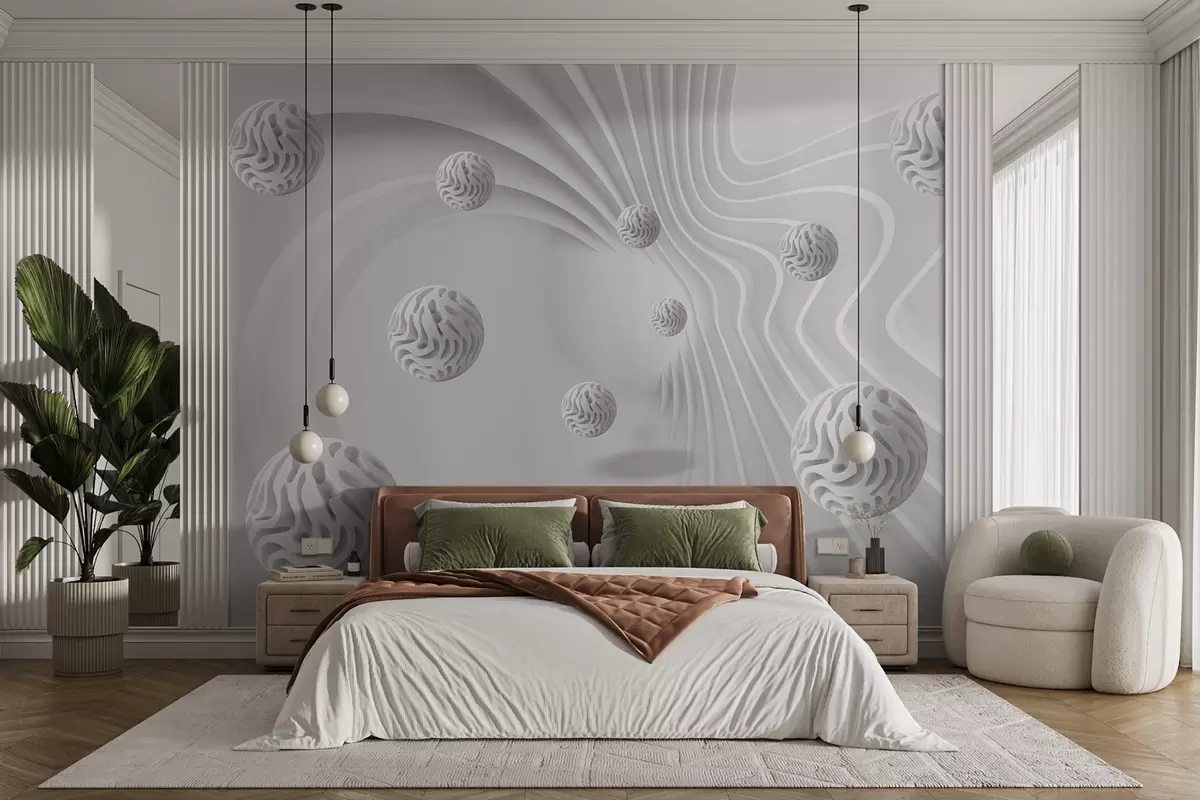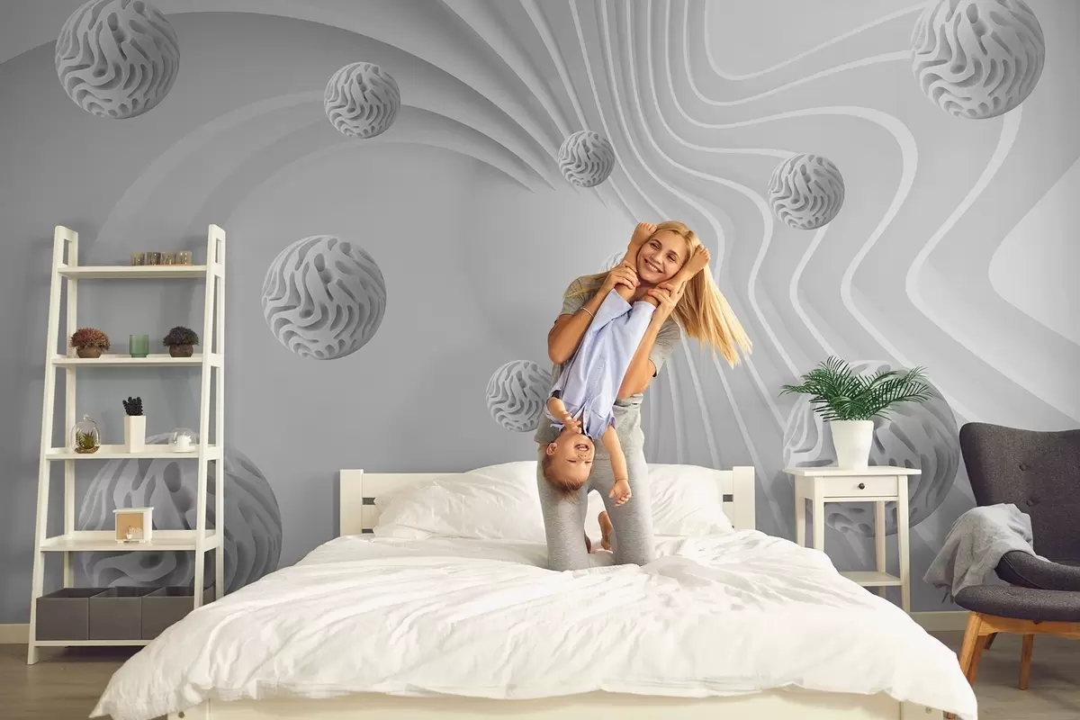 Papier peint photo abstraction grise en 3D avec sphères et effet de profondeur N° w08553