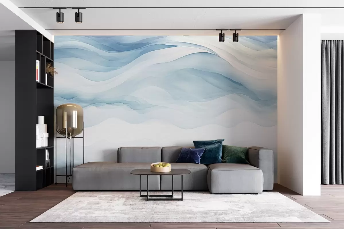 Papier peint photo Vagues bleues aériennes, abstraction N° w08654