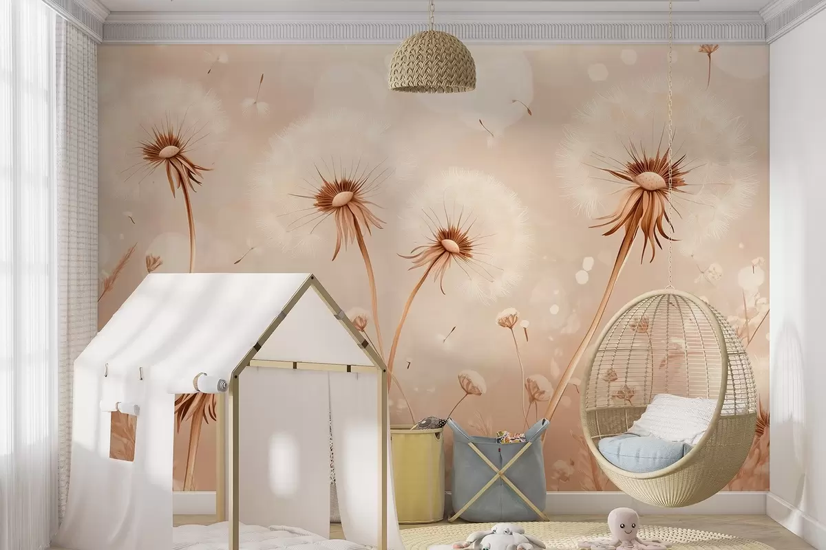 Papier peint photo Élégants pissenlits et fleurs sauvages dans un style pictural aux tons chauds N° w08657
