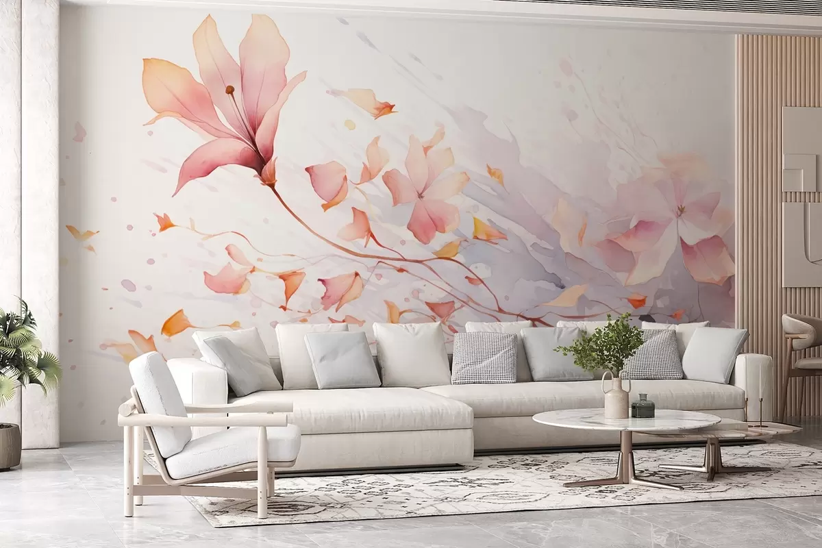 Papier peint photo Une fleur dont les pétales tombent et volent au vent dans un style aquarelle N° w08821