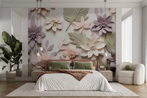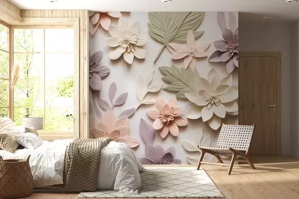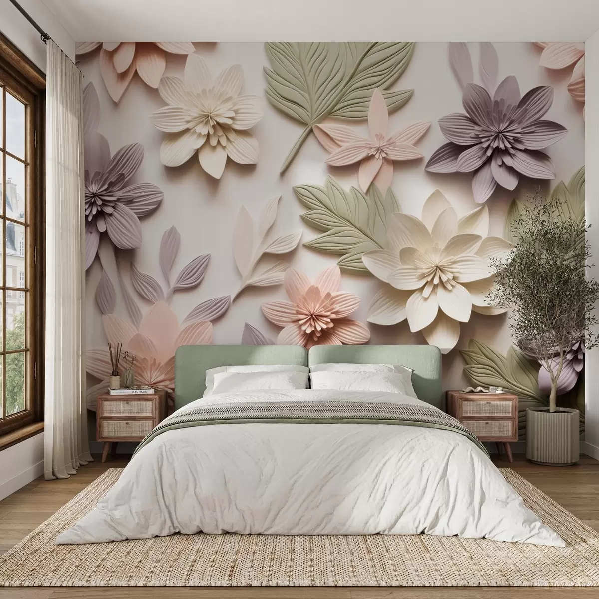 Papier peint photo relief floral en 3D sous la forme d'une composition en papier N° w08958