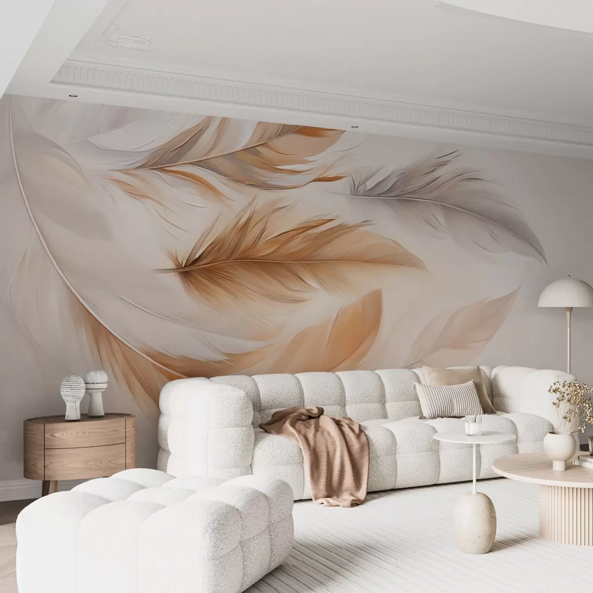 Papier peint photo Plumes aériennes flottantes brun-gris N° w08968