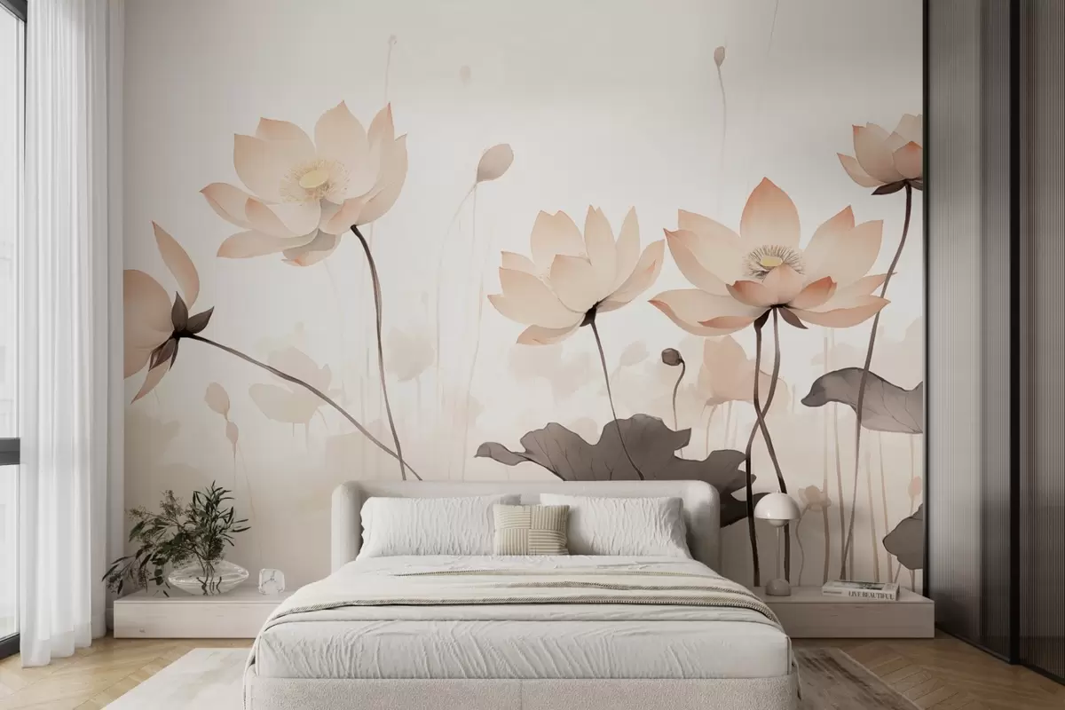 Papier peint photo Nénuphars dans des tons clairs et délicats en style aquarelle N° w09035