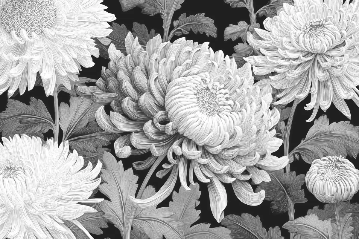 Papier peint photo Grandes orchidées noires et blanches avec feuilles N° w09125v1