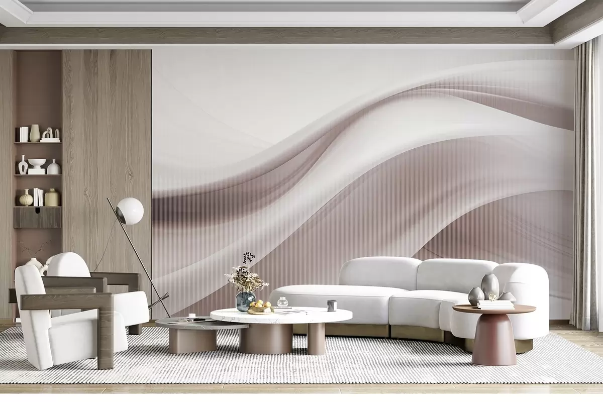 Papier peint photo Imprimé abstrait aux lignes fluides et aux rayures verticales subtiles, créant un sentiment de mouvement et de profondeur, palette beige N° w09189